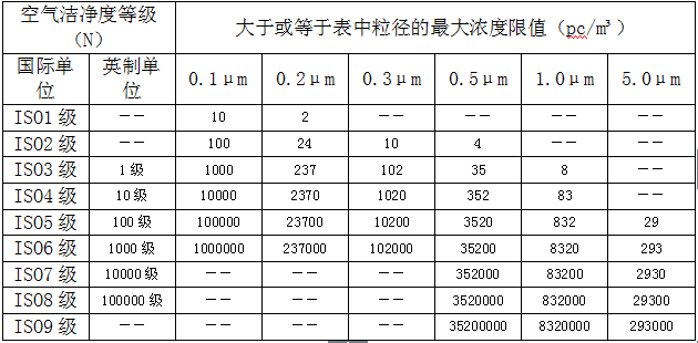潔凈室及潔凈區(qū)空氣潔凈度整數(shù)等級(jí)表: