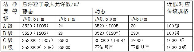 新版醫(yī)藥GMP潔凈度等級(jí)ABCD空氣懸浮粒子標(biāo)準(zhǔn):